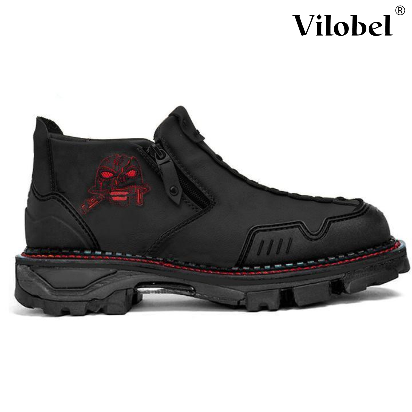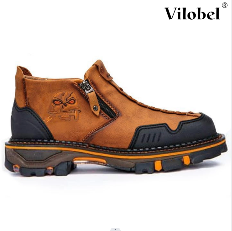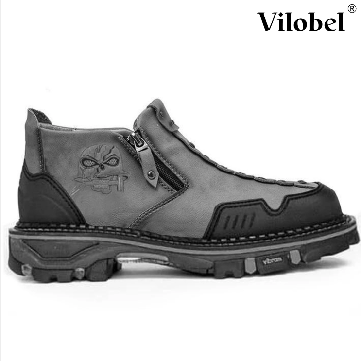 Men Leather Skull Zipper Casual Western Boots