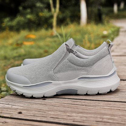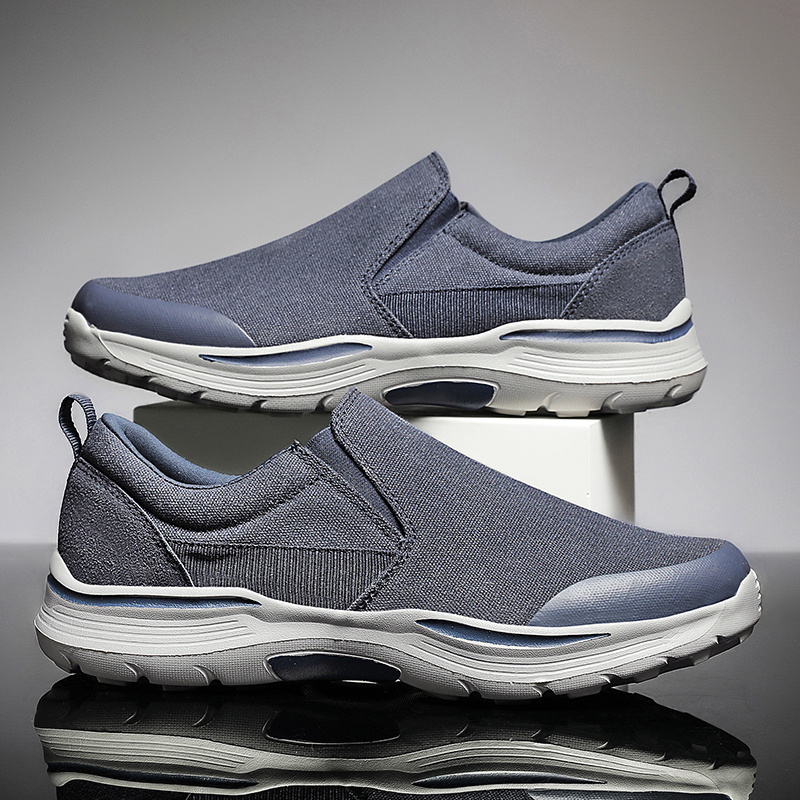 , the knit/cotton/canvas upper makes these casual slip-ons light and breathable. These men's loafers feature a soft multi-spandex/canvas lining for a barefoot-like experience. The EVA sole provides good cushioning and absorbs shocks as you walk. Xshoeey® deck shoes provide great support for those who need shoes all day. You can use the shoes as home slippers, work shoes or travel sneakers.