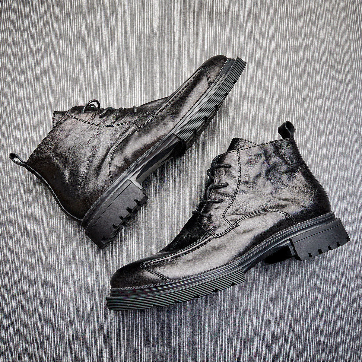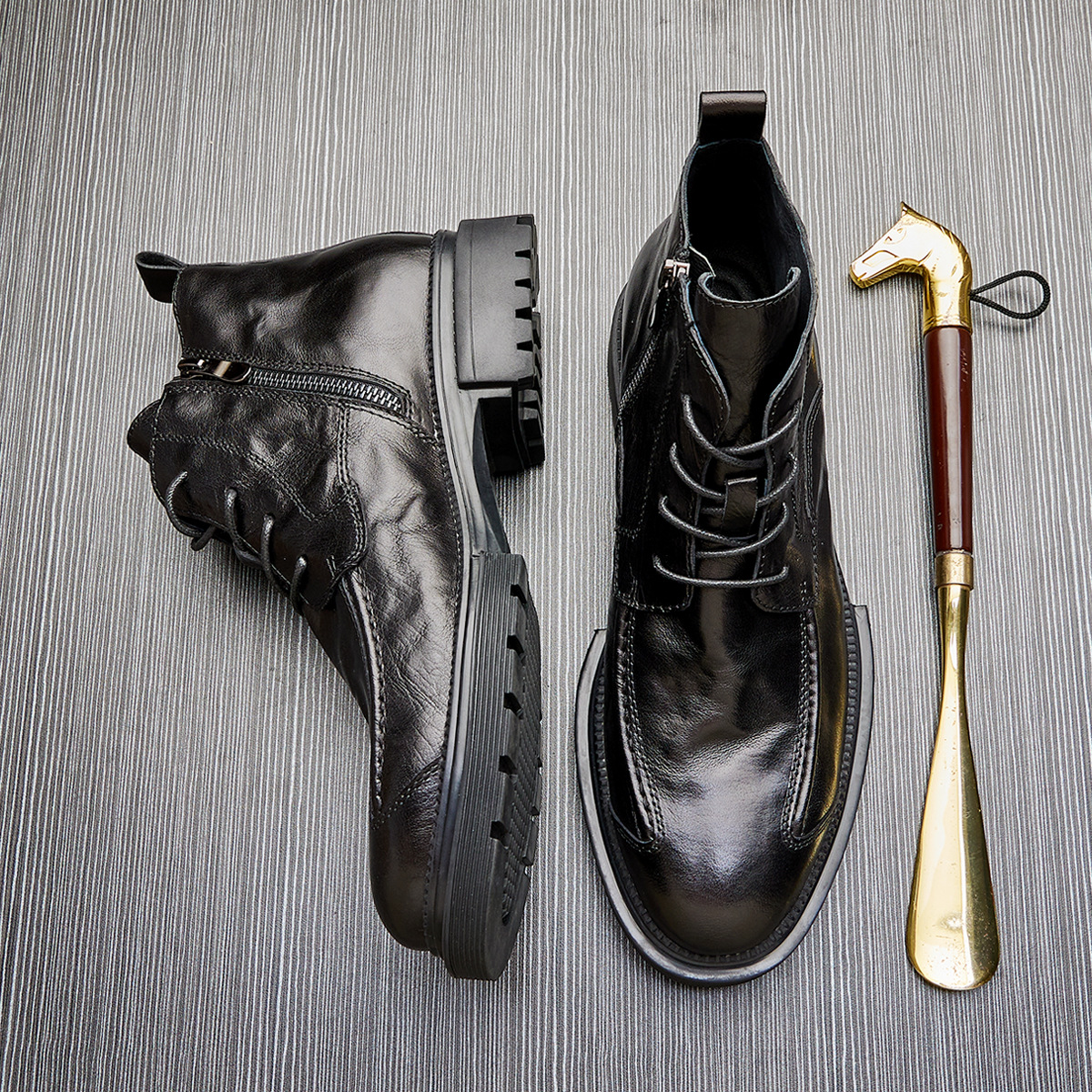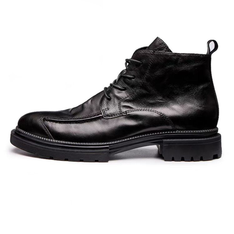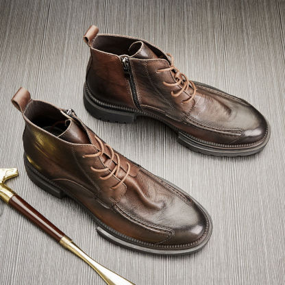 MEN'S GENUINE LEATHER ZIPPER SHORT THICK SOLE BOOTS