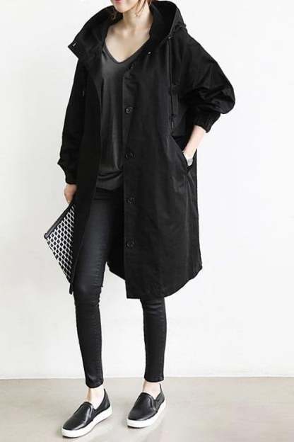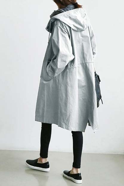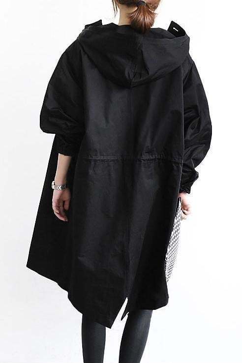 Stay dry without compromising your style credentials in this oversized rain jacket. The lightweight water-resistant material was selected to be resilient in any weather. Elasticated wrist cuffs make it easy to roll your sleeves up. A drawstring hood completes the coat.
